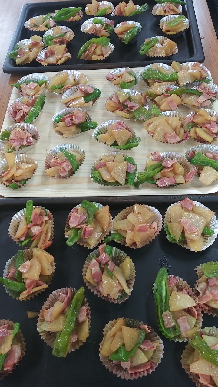 コールラビ、ししとうとベーコンのバター醤油炒め