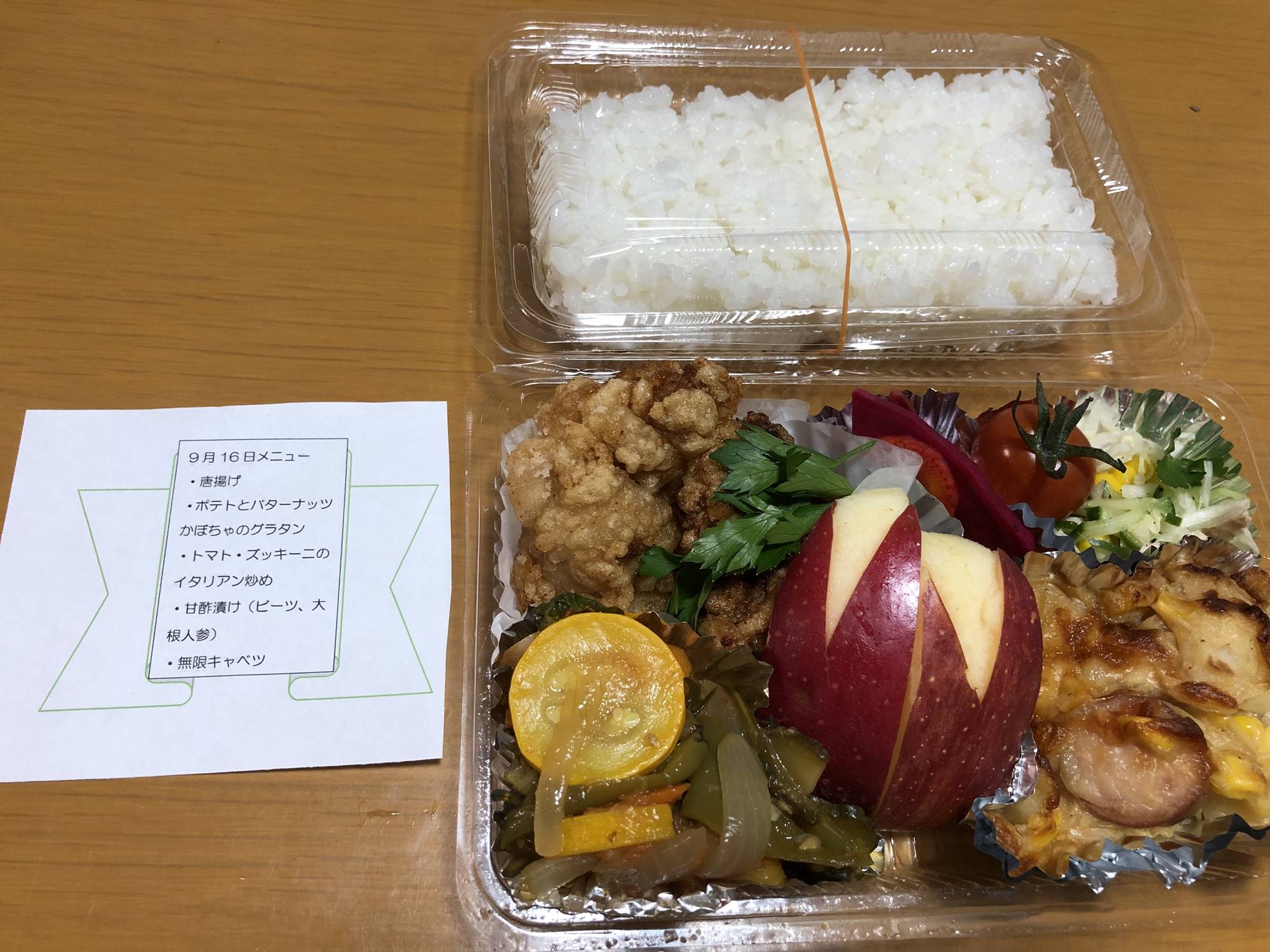 ホープ食堂のみなさま、おいしいお弁当をつくってくださりいつもありがとうございます。